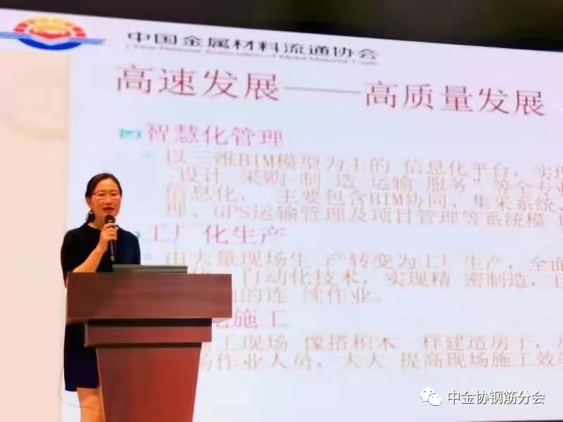 中國金屬材料流通協(xié)會(huì)副秘書長兼鋼筋分會(huì)副會(huì)長李艷受邀出席博覽會(huì),并在開幕式大會(huì)上發(fā)表了主題演講。李艷指出,首屆廣西數(shù)字建工博覽會(huì)立意明確,內(nèi)容豐富,形式新穎。對于推動(dòng)成型鋼筋加工新技術(shù)和新模式在全國范圍內(nèi)普及應(yīng)用具有積極的意義和深遠(yuǎn)的影響。在演講中,李艷還表示,成型鋼筋加工在國外先進(jìn)國家得到了廣泛的應(yīng)用,所占比例普遍超過90%,有的甚至達(dá)到了100%,但在我國的比例還不足10%,這就需要業(yè)內(nèi)的有識之士共同努力,為提高生產(chǎn)效率,推廣精益制造,實(shí)現(xiàn)“高質(zhì)量發(fā)展”而不懈奮斗。
