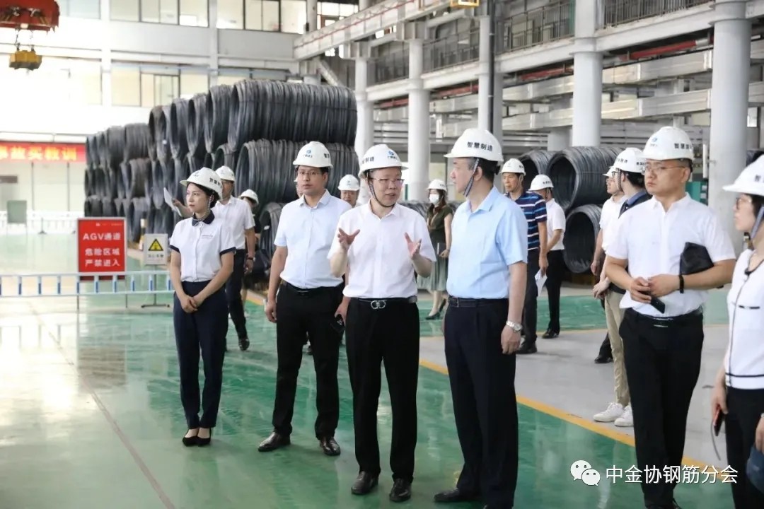 7月12-13日,中國金屬材料流通協會鋼筋分會秘書長助理孫京岡,陪同住房和城鄉建設部科技與產業化發展中心(住宅產業化促進中心)住房和房地產處處長高真一行,赴分會常務副會長單位廣西建工集團智慧制造有限公司建筑成型鋼筋智能生產項目進行調研,并就成型鋼筋工廠化加工行業發展現狀、面臨的困難及發展趨勢等進行了座談交流。