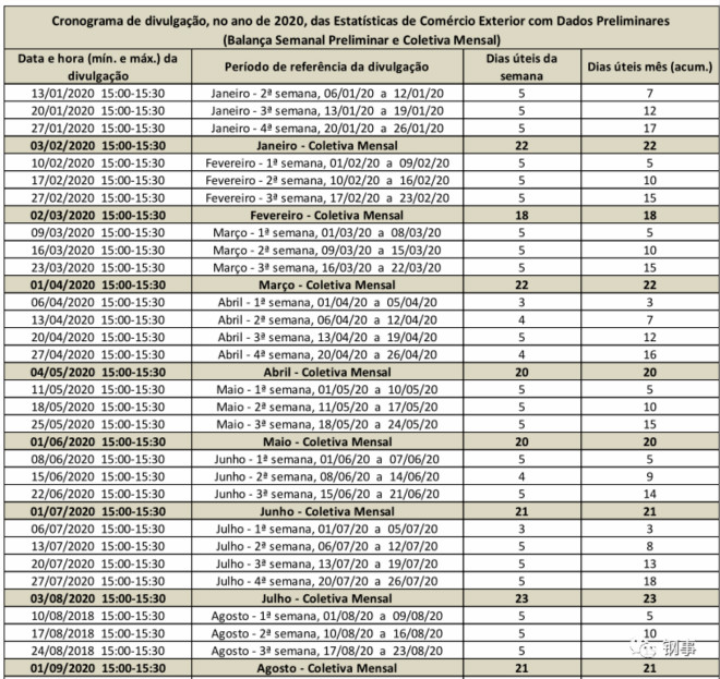 7月份第一周的3個工作日,出口量為561萬噸,日均187萬噸;第二周的5個工作日,出口量為892萬噸,日均178.4萬噸。根據巴西經濟部公布的數據,7月份巴西共有23個工作日,預估7月份巴西鐵礦石出口量大概率將超過3000萬噸,在6月份基礎上有較大增幅。6月份,巴西鐵礦石出口量為3004.8萬噸,同比增加1.3%,環比增加39%,為8個月來首次突破3000萬噸。